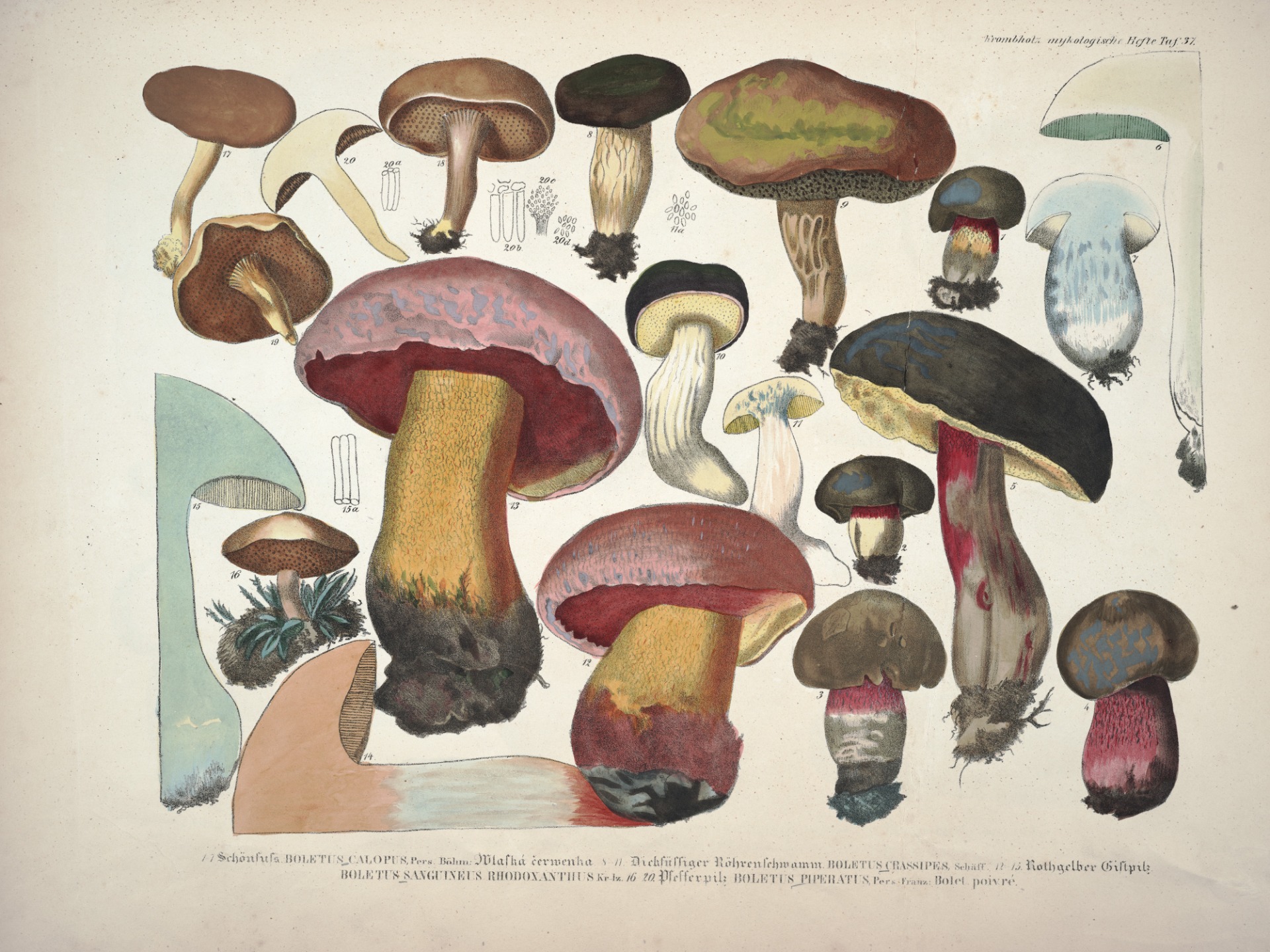 A reprint of one of the most significant mycological works by Czech physician and mycologist J.V. Krombholz. Its dominant feature is 76 beautiful large-format color plates, printed in a 1:1 ratio. The reprint of this exceptional work also includes an introductory section describing the author's life and how this exceptional work came into being. Each plate is accompanied by the current valid name of the species depicted, or its status (synonym, etc.) if it is not currently recognized as a valid species by mycologists. The reprint is printed in a limited edition of only 30 copies.
